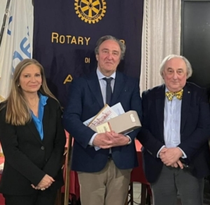 Al termine della serata conviviale il relatore è stato omaggiato dal presidente del Rotary, Renzo Gai, di un volume con la storia del club e di una magnum di vino astigiano.